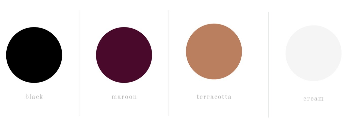 As we moved into core design, the burgundy and terracotta palette added richness and when paired with crisp black or white, creates a modern, approachable personality.