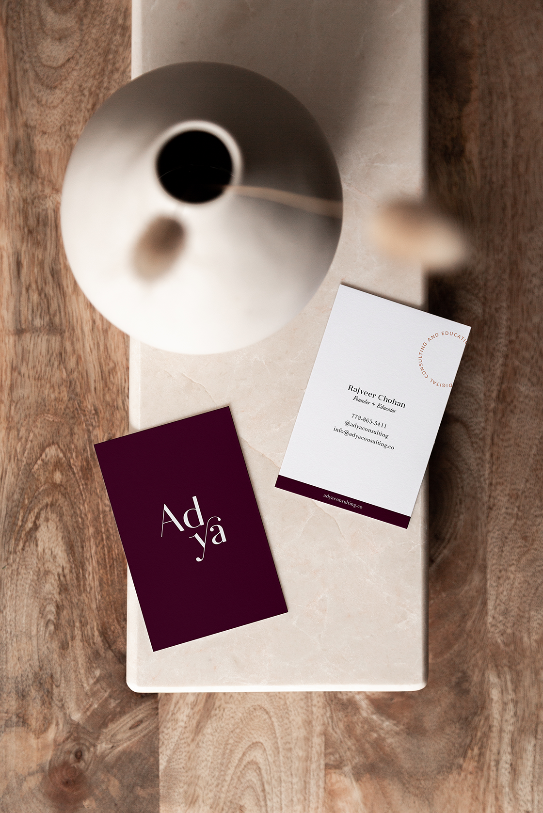 I guided this project through a complete rebrand, beginning with name development that honoured founder Rajveer's Indian heritage. The name 'Adya', meaning 'Goddess of Power', reflects the company's mission to empower women in business.