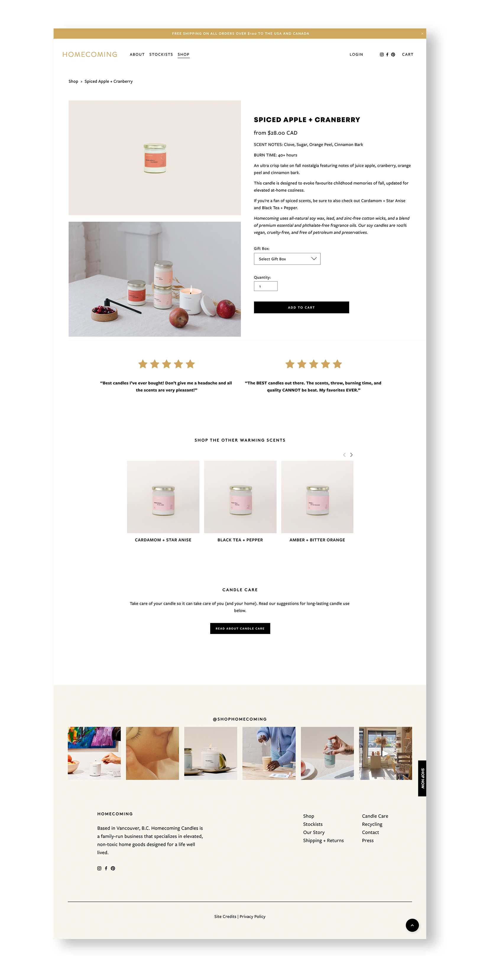 The goal and purpose in working with Homecoming Candles was to integrate their new branding into the website to ensure a cohesive customer experience.