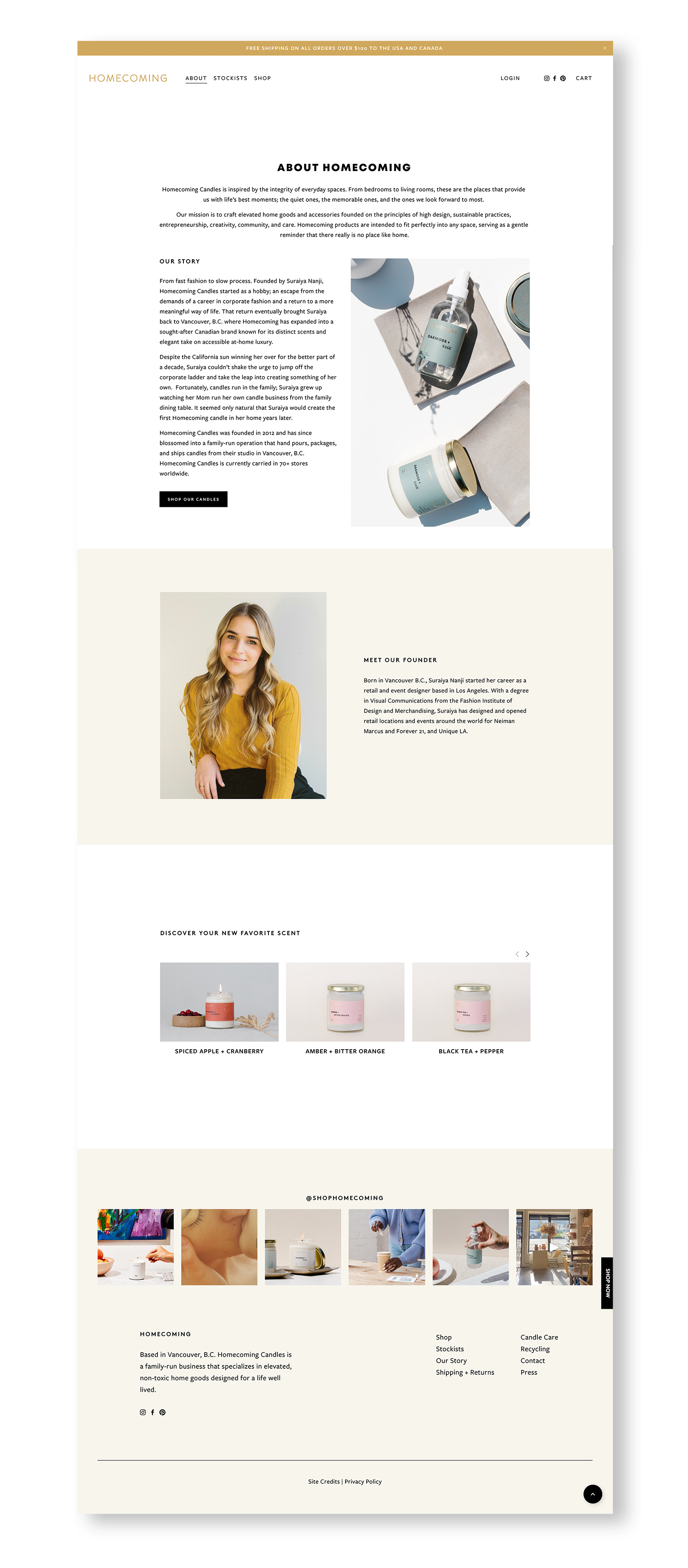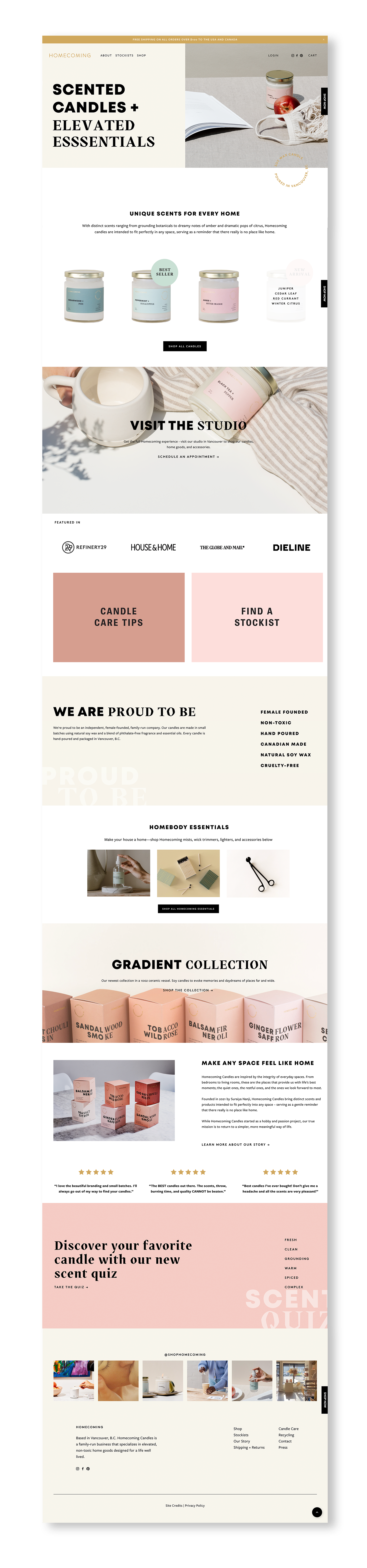 Homecoming Candles is a female-founded candle business based in Vancouver, B.C. With distinct scents ranging from grounding botanicals to dreamy notes of amber and dramatic pops of citrus, Homecoming candles are intended to fit perfectly in any space, serving as a reminder that there really is no place like home.