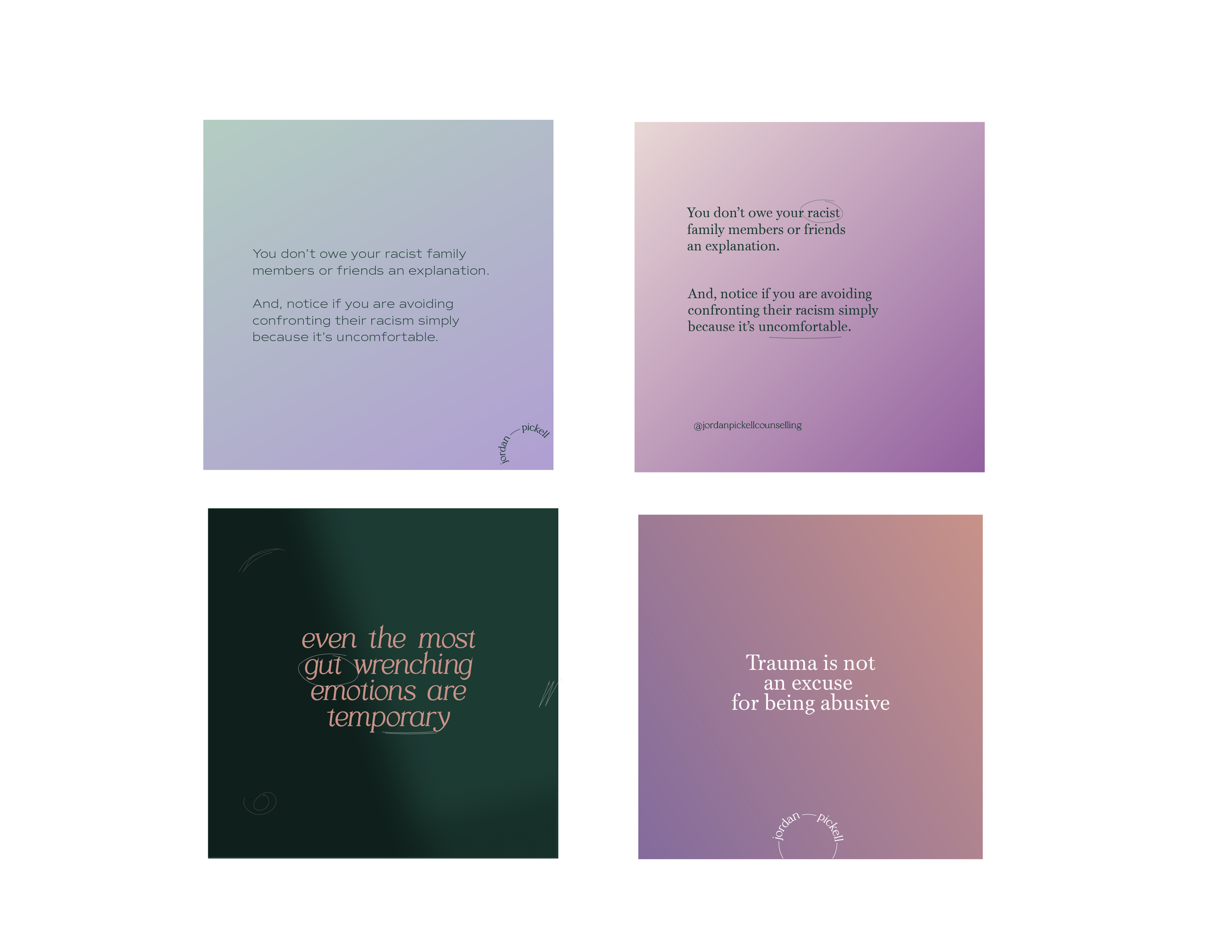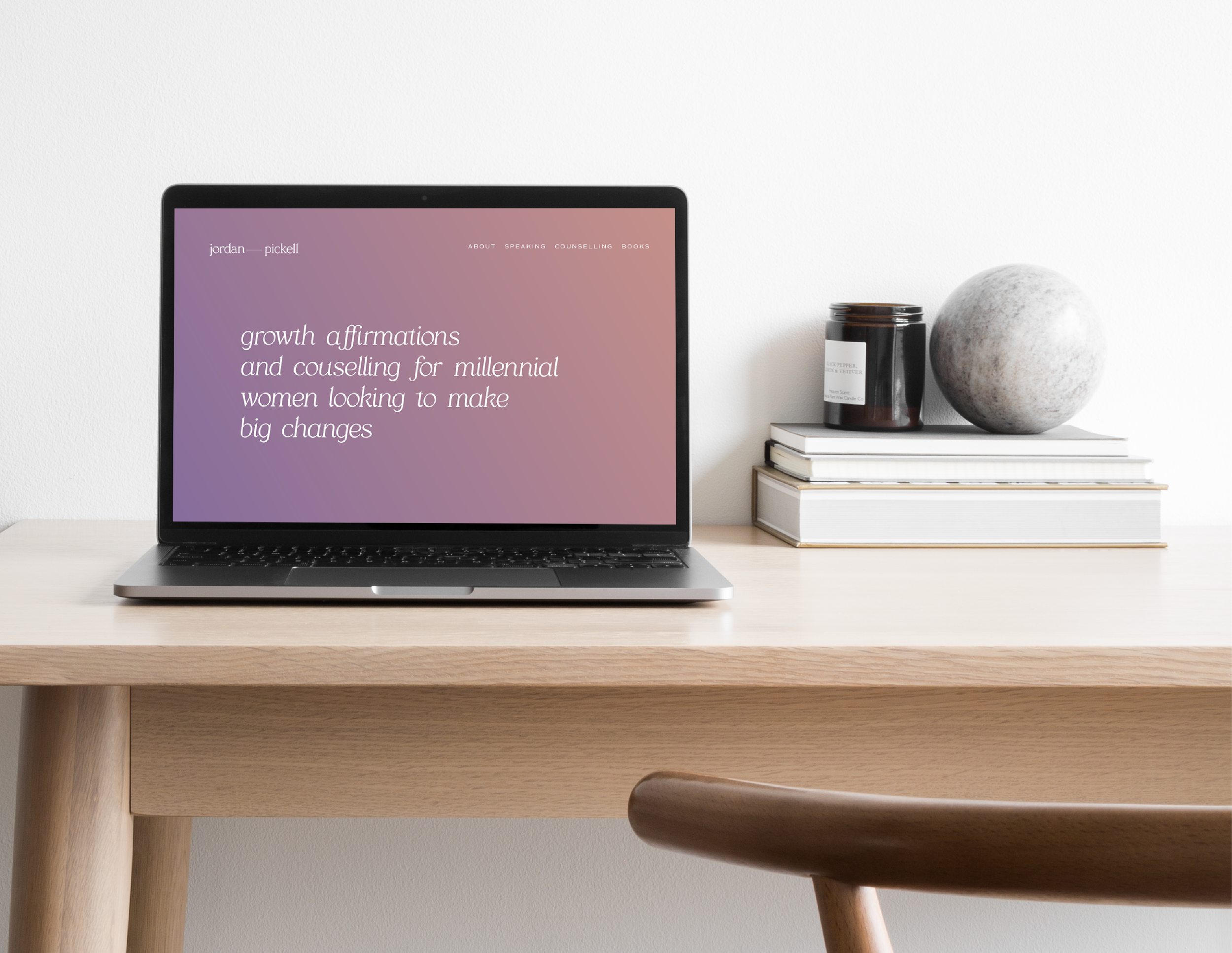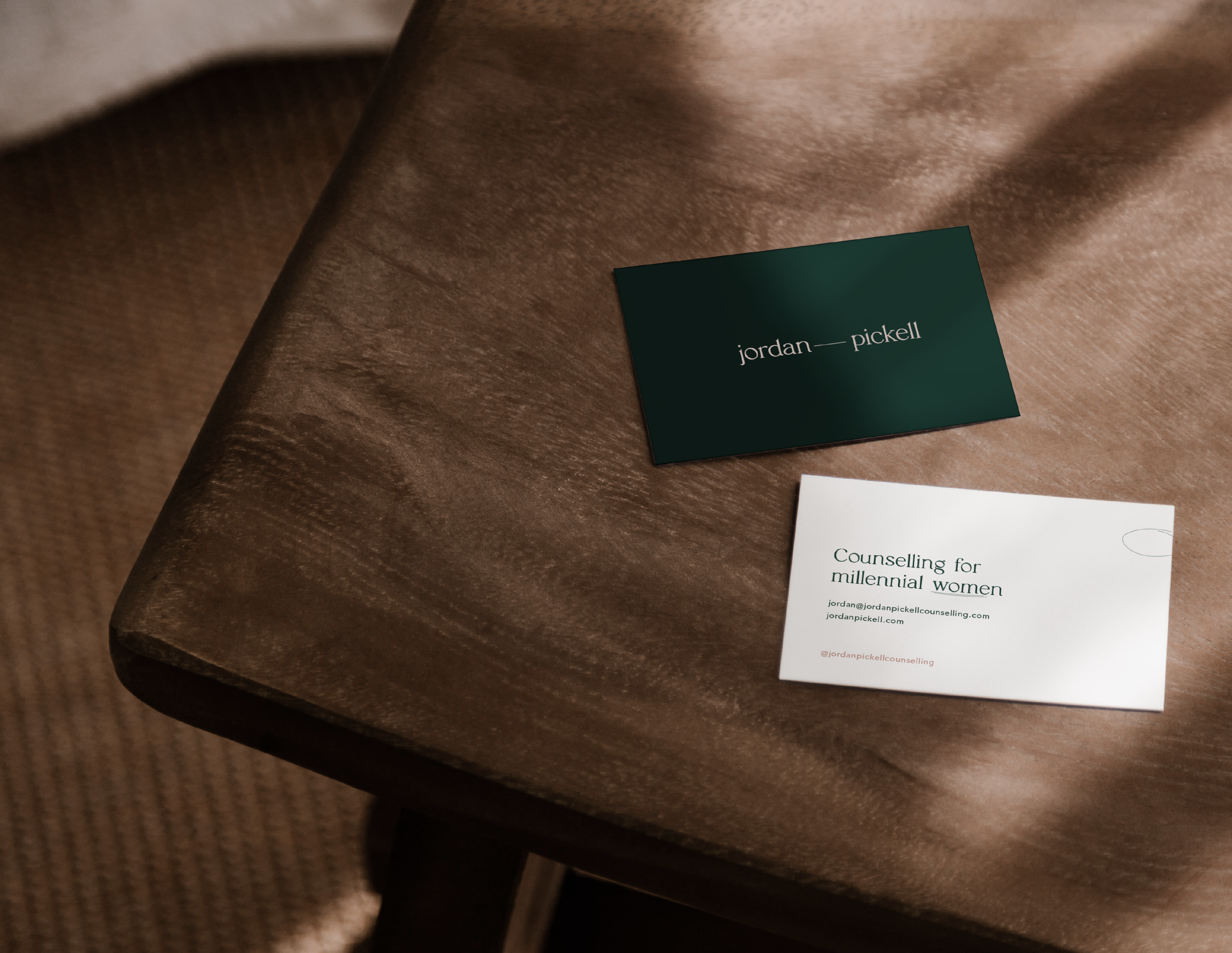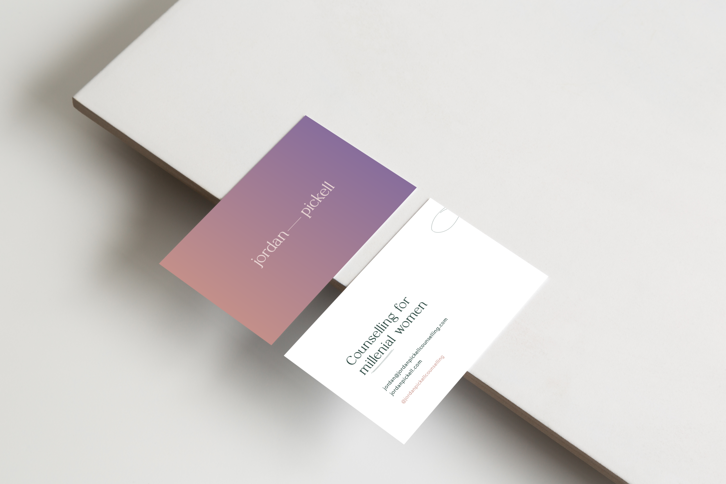 For the design of Jordan’s Brand Identity, her growth goals were kept front of mind. Knowing that she wants to write a book and do more public speaking, the brand had to be more about her as a professional than her counselling services.