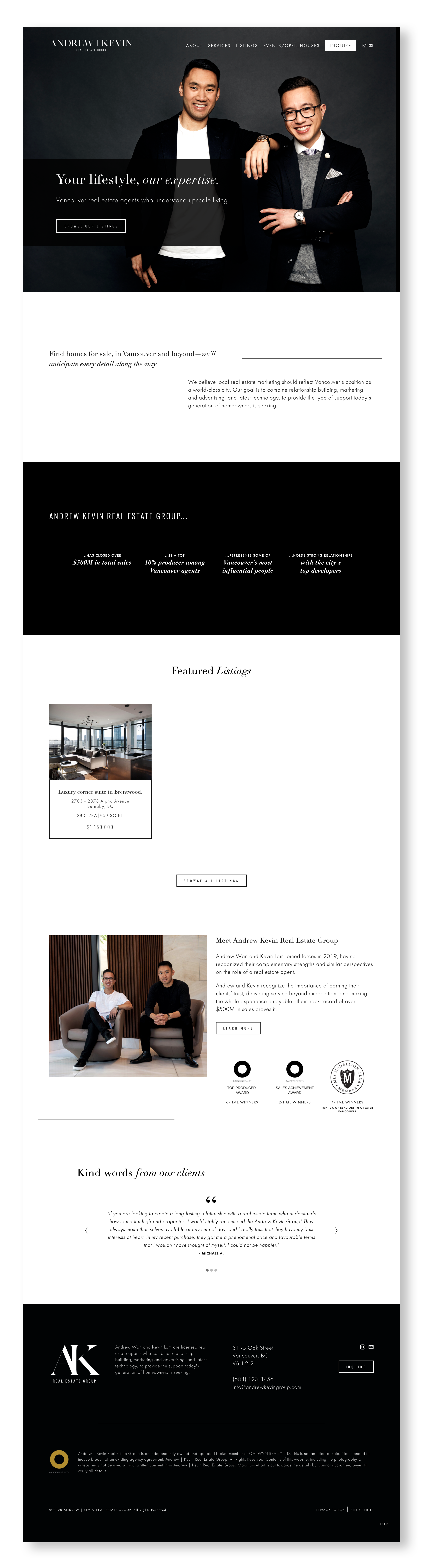 Andrew Wan and Kevin Lam are two Vancouver real estate agents who decided to team up in order to better offer luxury real estate to their clients. Inspired by the markets in LA, New York, Tokyo, and London, their goal is to combine relationship building, marketing, and advertising with the latest technology to provide the type of support today’s generation of homeowners is seeking.