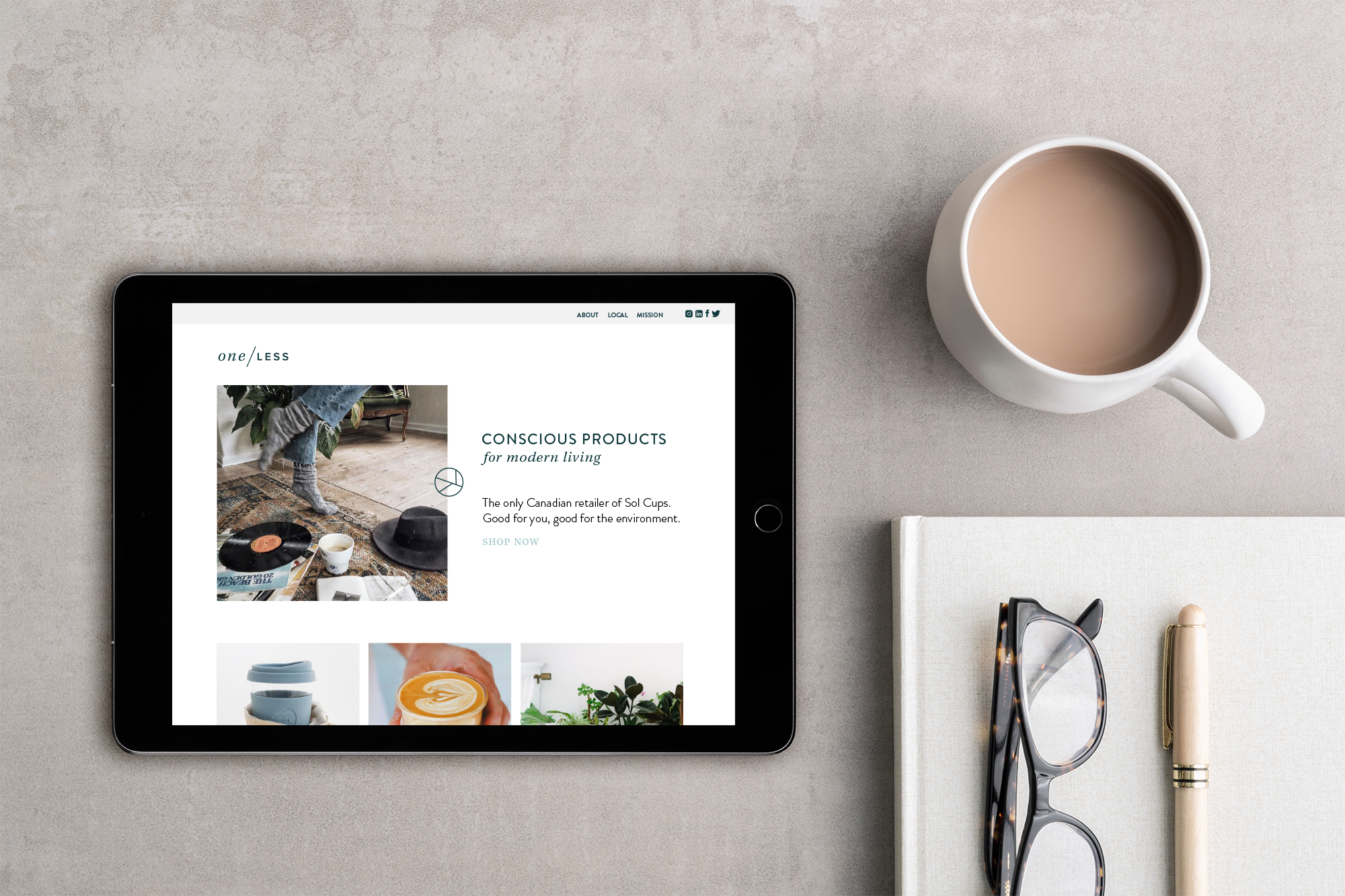 We teamed up to create the brand identity for One Less, using a brand strategy created by Digi Darlings. Goat Social took over their Shopify website once the branding was complete – including an icon that represents their 4 core values and the shape of the earth.