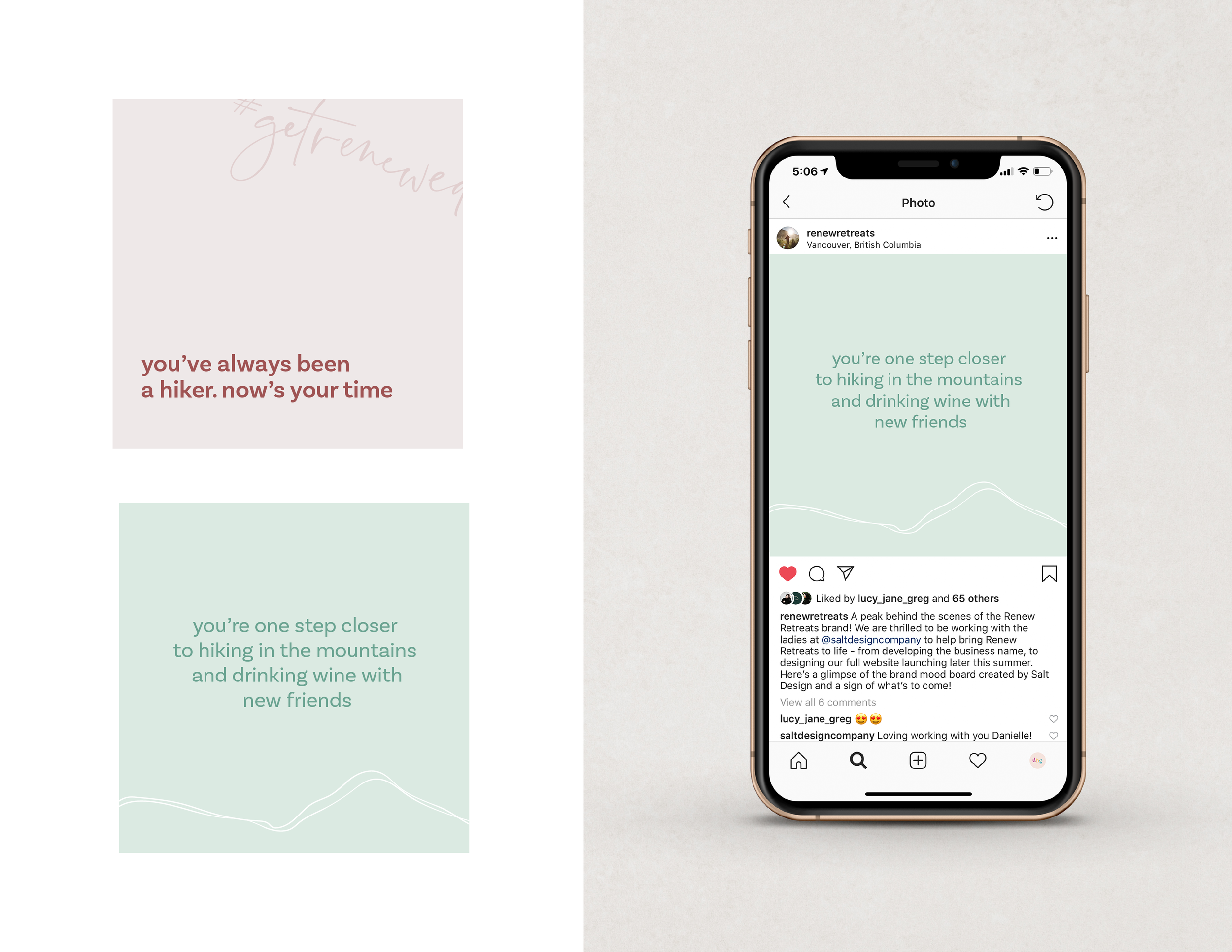 Soft, feminine and adventurous, the Renew Retreats brand had to represent the ourtdoors without being “outdoorsy”. The goal was to use the brand to attract professional women who were willing to spend on a premium experience.